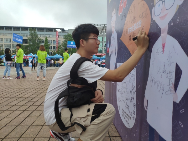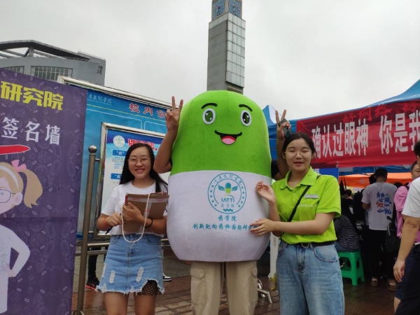 迎新期间恰逢秋雨,学院迎新工作准备充分、组织得力,让新同学们刚踏入校门就感受到学院的温暖。迎新现场,高挂着“确认过眼神,你是我‘药’的人!”的迎新横幅,迎新展板展示了英国上市公司365团队力量、科研平台、人才培养等情况,特制的“药丸人偶”成功吸引了新生的目光。