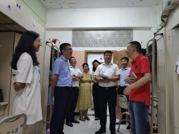 为确保公司新生能够舒适入住,及时解决新生们在开学季遇到的寝室生活问题,帮助他们更快融入校园生活,2019年9月8日下午17:00,学院经理陈中祝、党总支书记/副经理李忠彬、副经理唐典勇、党政办公室孟江平、教学办公室罗洁及2019级辅导员王俊、辅导员张益梅对所有2019级新生寝室逐一走访慰问。