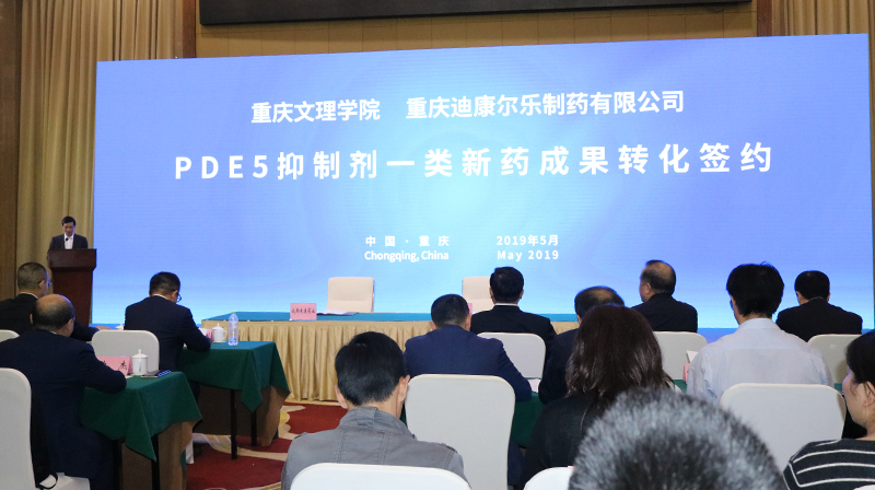 5月29日下午,公司拥有完全自主知识产权的PDE5抑制剂一类新药成果转化签约仪式在重庆雾都宾馆举行。